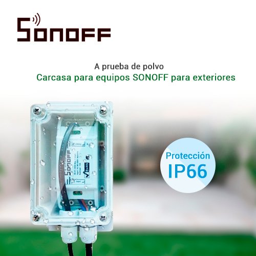 Cabe destacar que la carcasa sonoff a prueba de agua no permite la inmersión en agua, solamente brinda protección contra chorros de agua potentes y polvo.